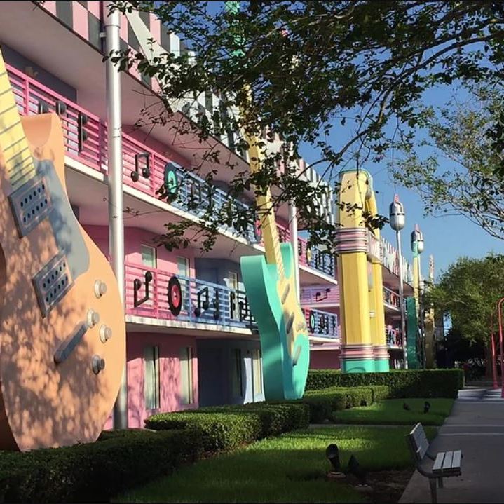 O complexo All Star, que pertence à categoria econômica, é composto por três hotéis. Cada um com um tema diferente: música (All Star Music), esporte (All Star Sports) e filmes (All Star Movies). Escolhemos o All Star Music Resort, por apresentar o melhor custo para o período da nossa estadia.