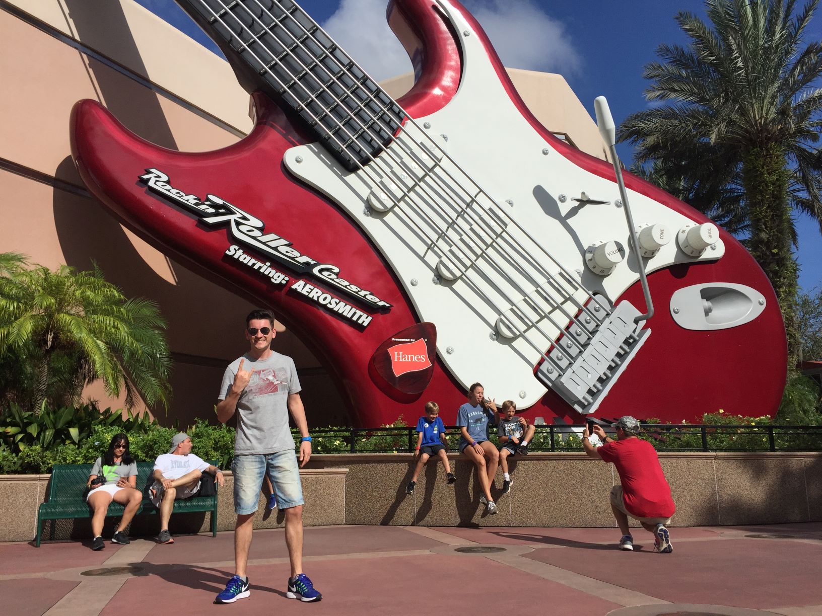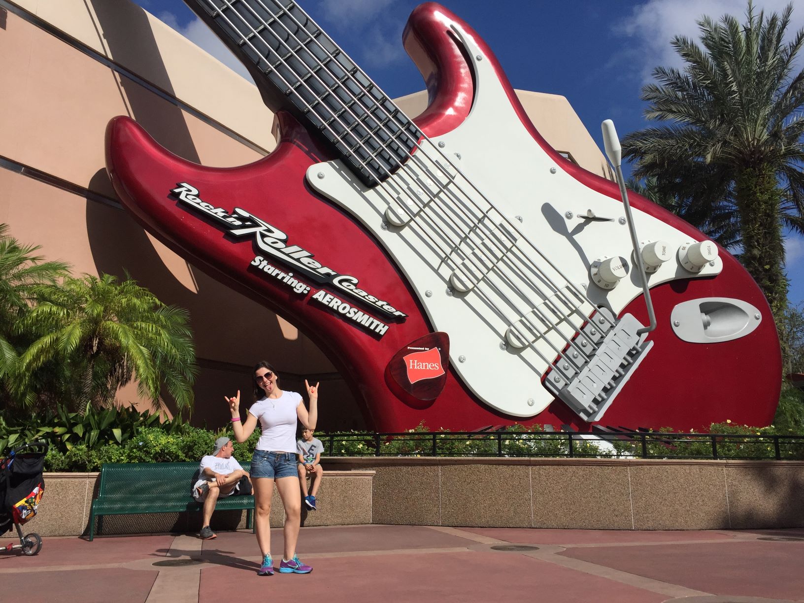Deixamos de reservar o FastPass+ para esta atração, porque a princípio, entraríamos no parque às 8h00 e provavelmente não haveria fila. Com a mudança no roteiro, seguimos direto para o brinquedo e aguardamos por quase uma hora até que chegasse a nossa vez. Aliás, minha vez. A Carina morre de medo de atrações radicais, mas a paixão pela banda a fez seguir até a hora do embarque. Ao ver a velocidade com que o carrinho disparava, acabou desistindo.